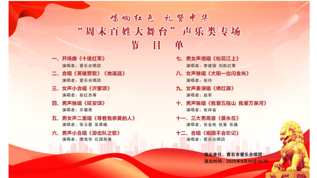 唱响红色 礼赞中华 “周末百姓大舞台”声乐类专场