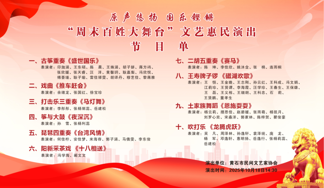 金秋十月 戏韵飘香 2025年黄石市“戏曲进乡村”文艺惠民演出