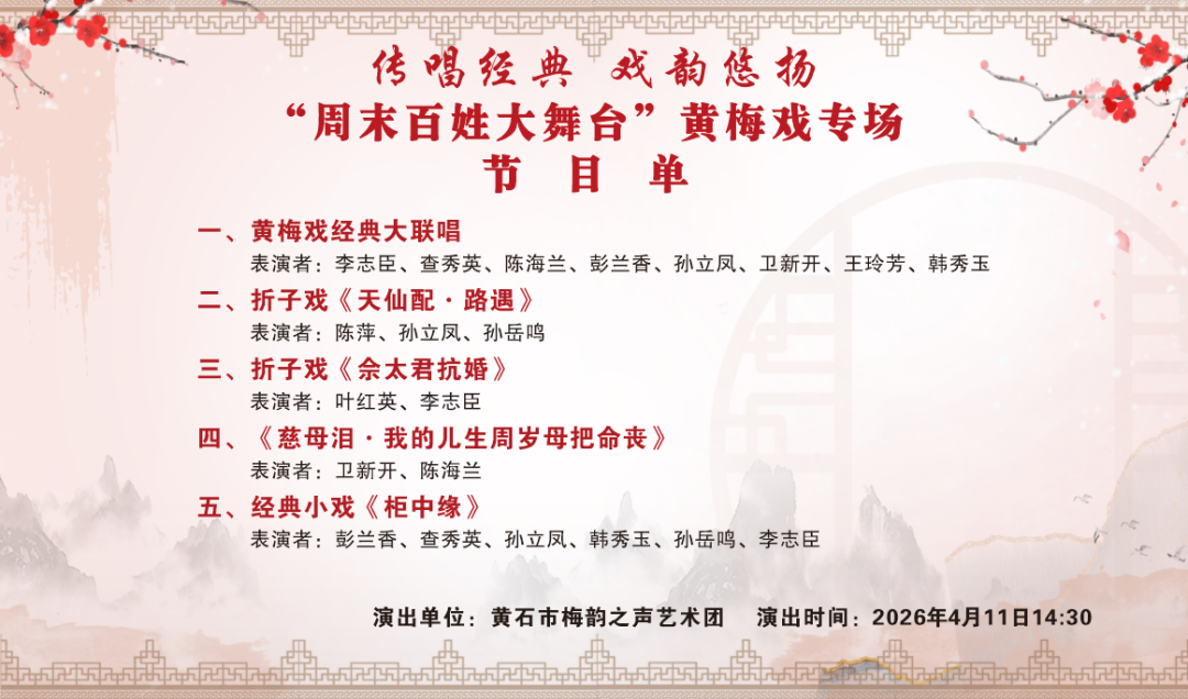 传唱经典 戏韵悠扬“周末百姓大舞台”黄梅戏专场