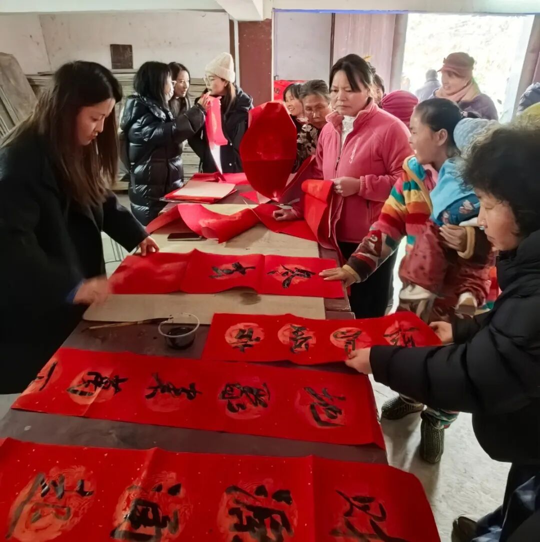“送春联”活动的周围始终围满了热情的村民。书法老师们挥毫泼墨,笔走龙蛇,一幅幅寓意吉祥的春联字跃然纸上。领到春联的乡亲们脸上洋溢着笑容,纷纷表示:“手写的春联才有年味!这‘福’气真是送到了心里!”