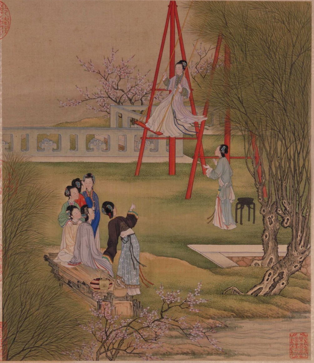 宫廷女子荡秋千,尽显春日闲趣