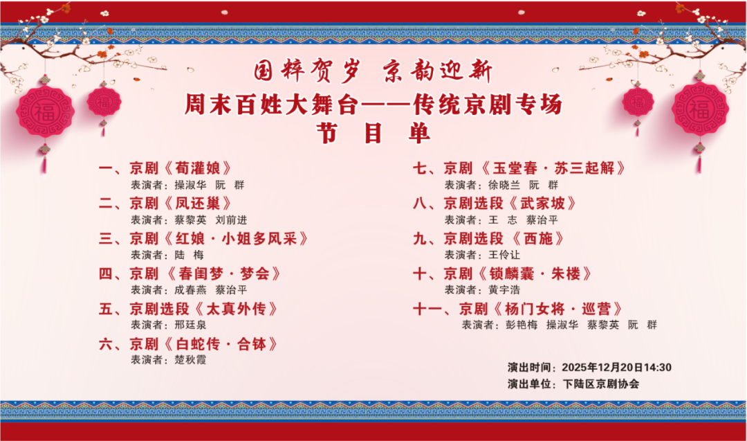 国粹贺岁 京韵迎新“周末百姓大舞台”文艺惠民演出