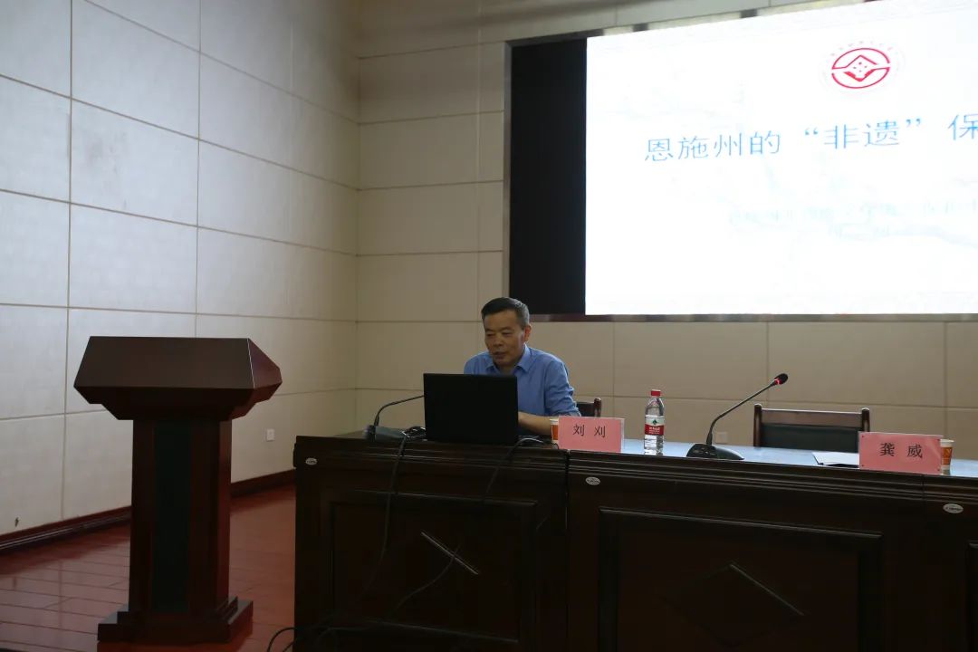 最后,恩施州非遗保护中心副研究馆员刘刈老师以《恩施州的“非遗”保护》为题从恩施州的非遗保护现状、主要做法、非遗立法、保护经验等四个层面做了一堂生动细致的解析。