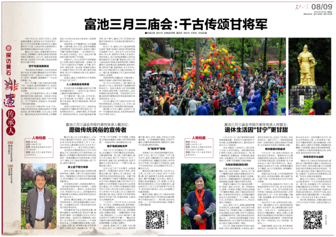 戴志红预言,富池三月三庙会将会成为湖北省黄石地区乃至周边地区最有影响力的庙会活动之一。我们想,这应该也是他——一名市级代表性传承人的最大心愿和期盼吧。