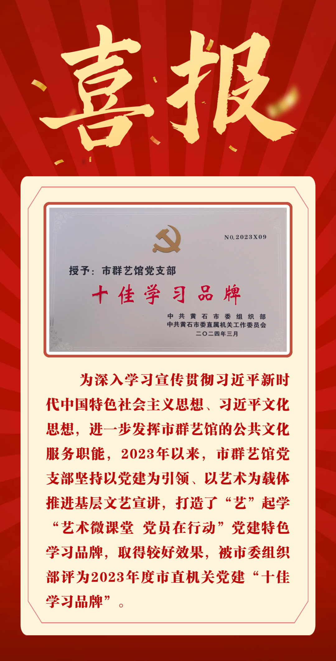 市群艺馆党支部获评2023年度市直机关党建“十佳学习品牌”