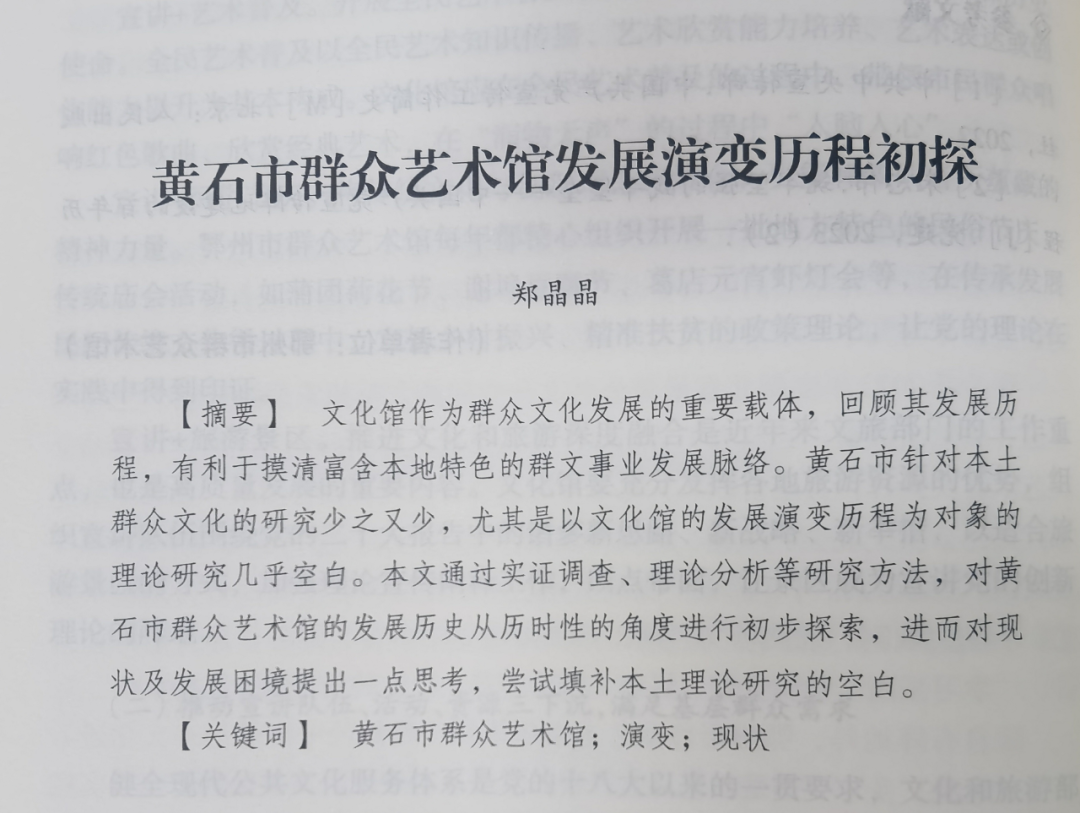 近日,由湖北省群众艺术馆主编的《群策群力——湖北省群众文化理论研究和实践探索》正式出版,市群众艺术馆业务干部郑晶晶和刘彩丽的研究论文分别入选。