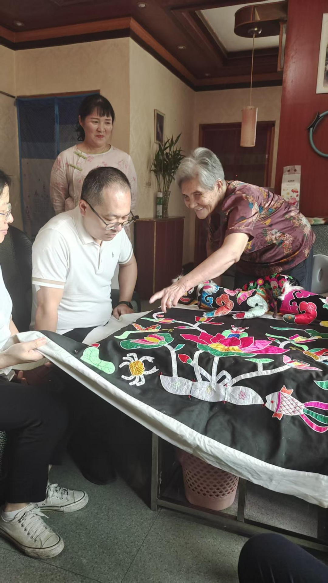 检查组先后前往大冶木雕传承基地参观,随后赴阳新县,调研阳新县文化馆“阳新布贴”、阳新采茶戏传承中心“采茶戏”两大国家级非遗项目保护情况,走访“阳新布贴”国家级代表性传承人蔡月娥,并考察省级非遗“折子粉制作技艺”生产传承基地。
