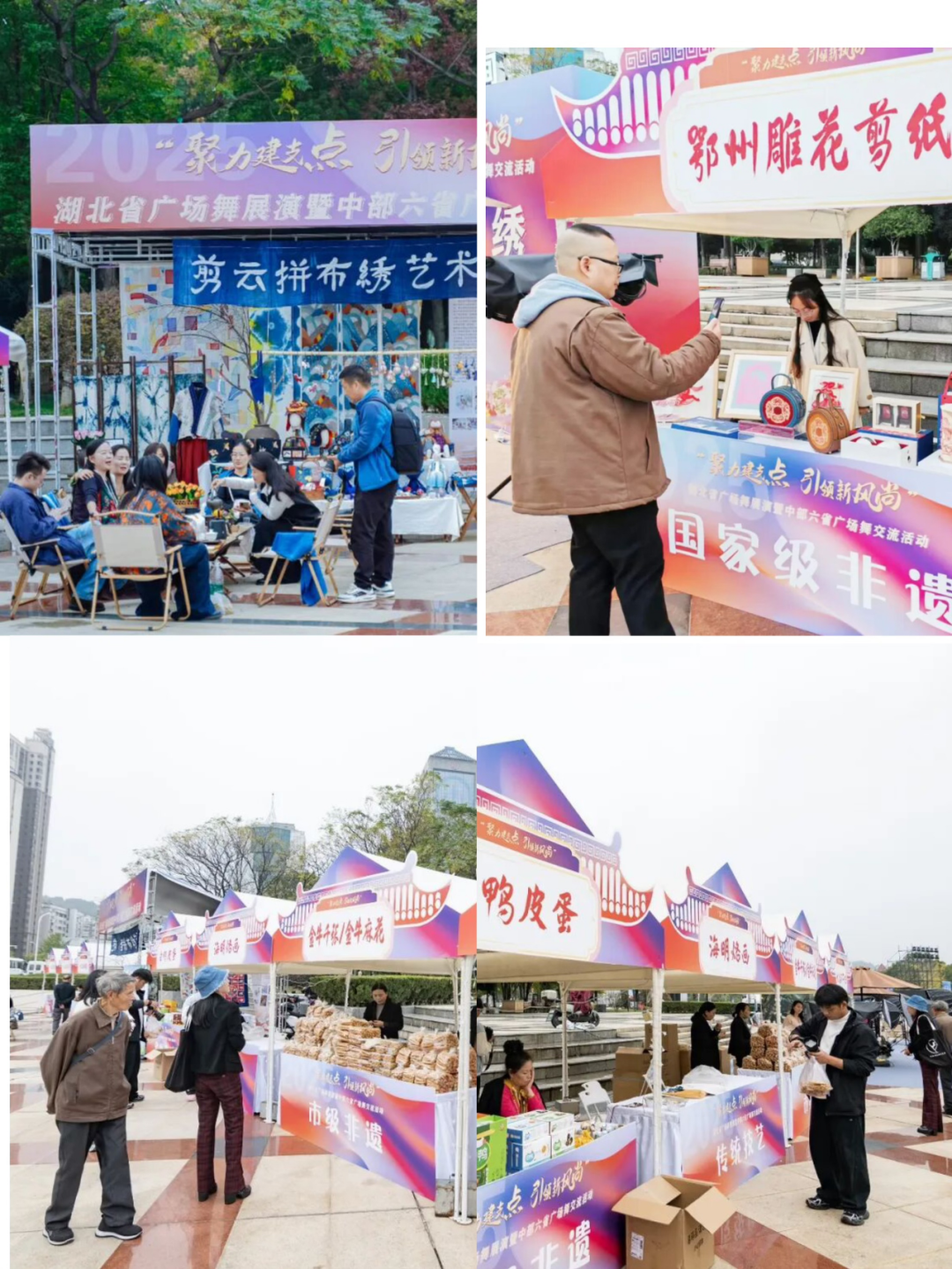 市集筹备组则聚焦动态非遗展示及市集,精心组织动态非遗展示环节,“我在现场听到很多市民夸赞动态非遗环节有创意,王寿牌子锣、阳新采茶戏、陈贵舞龙、火流星展示出来的效果都非常好。”市集筹备组负责人邓伟介绍说。市集的32个展位则汇聚了非遗项目、文创产品,不仅有本地黄石港饼、大冶刺绣等,还引进了仙桃贝雕、潜江面塑等特色项目,工作人员一遍遍沟通展陈细节,力求呈现最具烟火气的文化市集。展演当天吸引大量观众来现场逛市集,线上直播同步发力,销售额达20余万元。“很多人喜欢我们的麻花,各种包装的(麻花)都已经补货好几次啦!”金牛麻花“摊位”的负责人笑开了花。