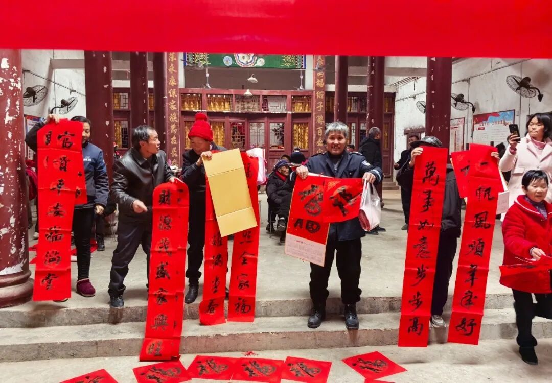 “送春联”活动的周围始终围满了热情的村民。书法老师们挥毫泼墨,笔走龙蛇,一幅幅寓意吉祥的春联字跃然纸上。领到春联的乡亲们脸上洋溢着笑容,纷纷表示:“手写的春联才有年味!这‘福’气真是送到了心里!”