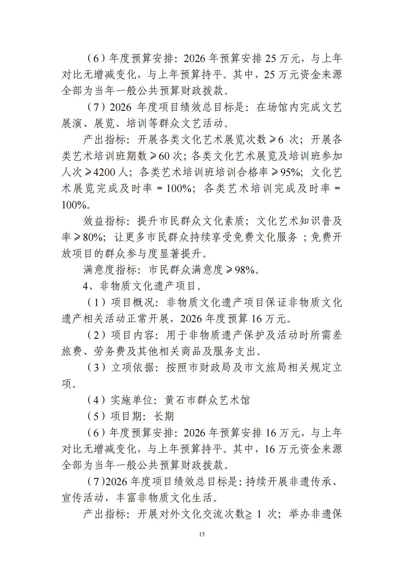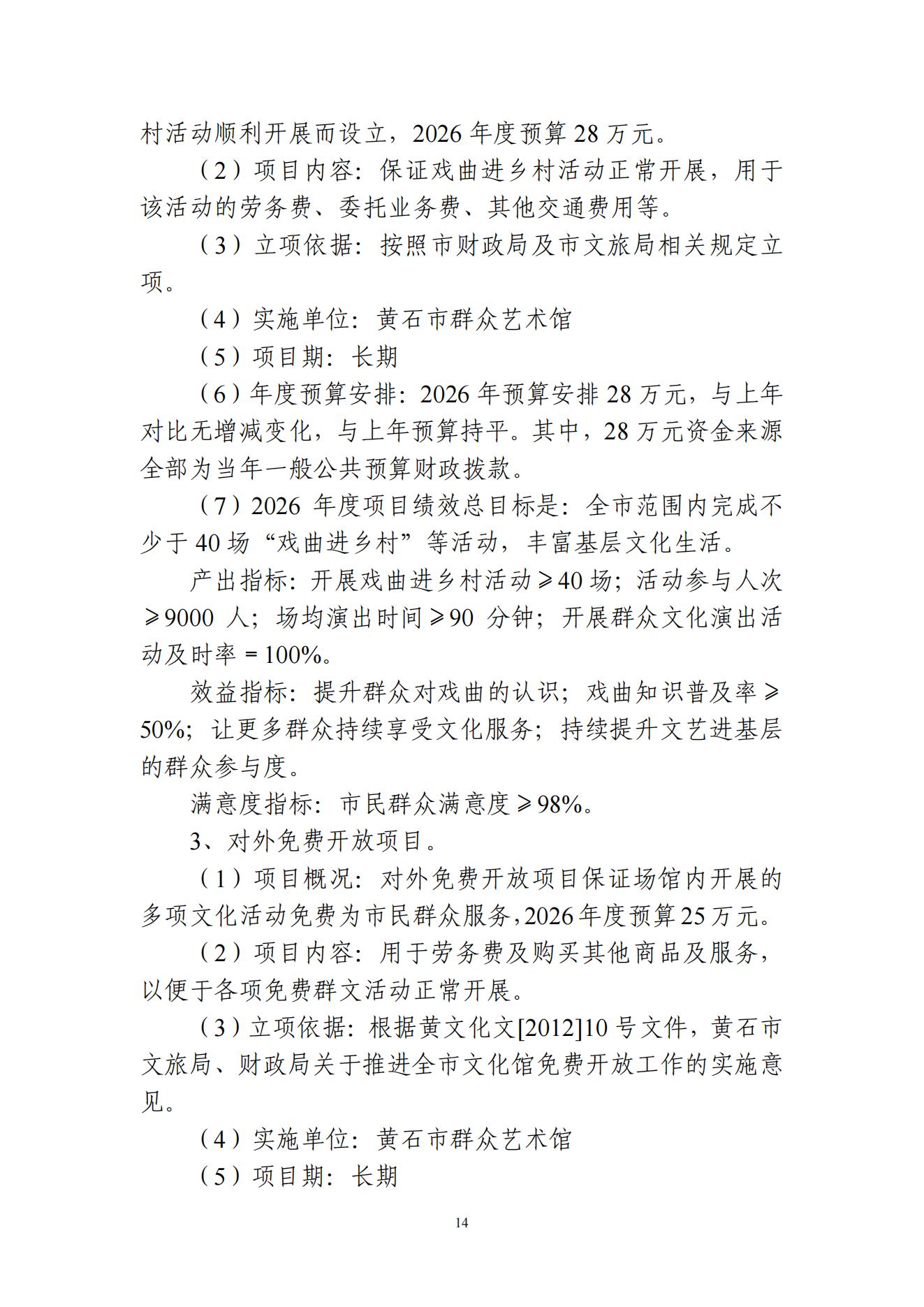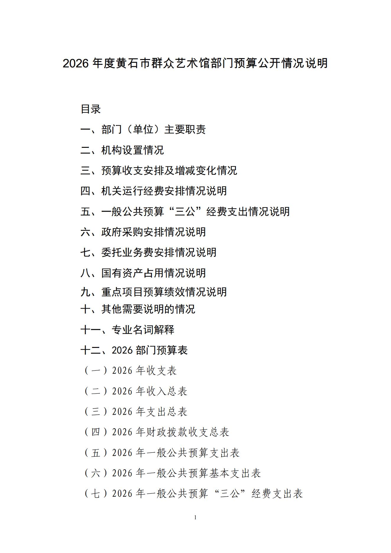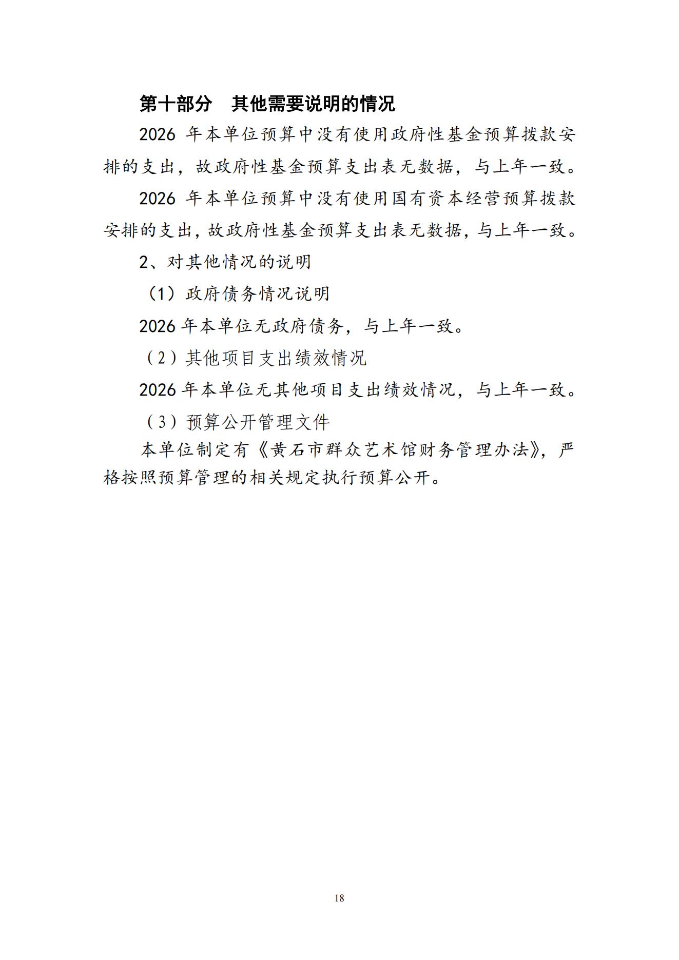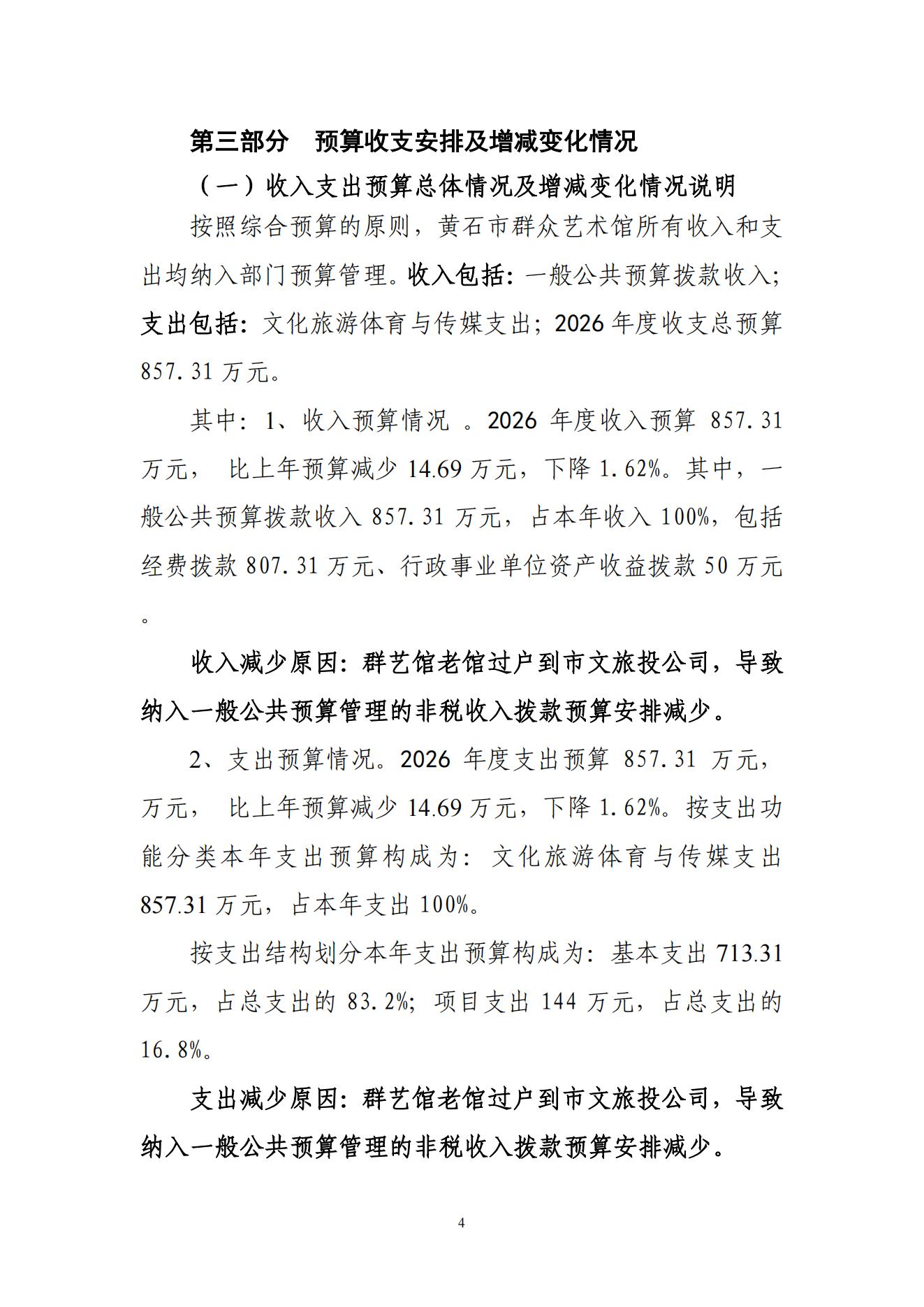 2026年度黄石市群众艺术馆部门预算公开情况说明