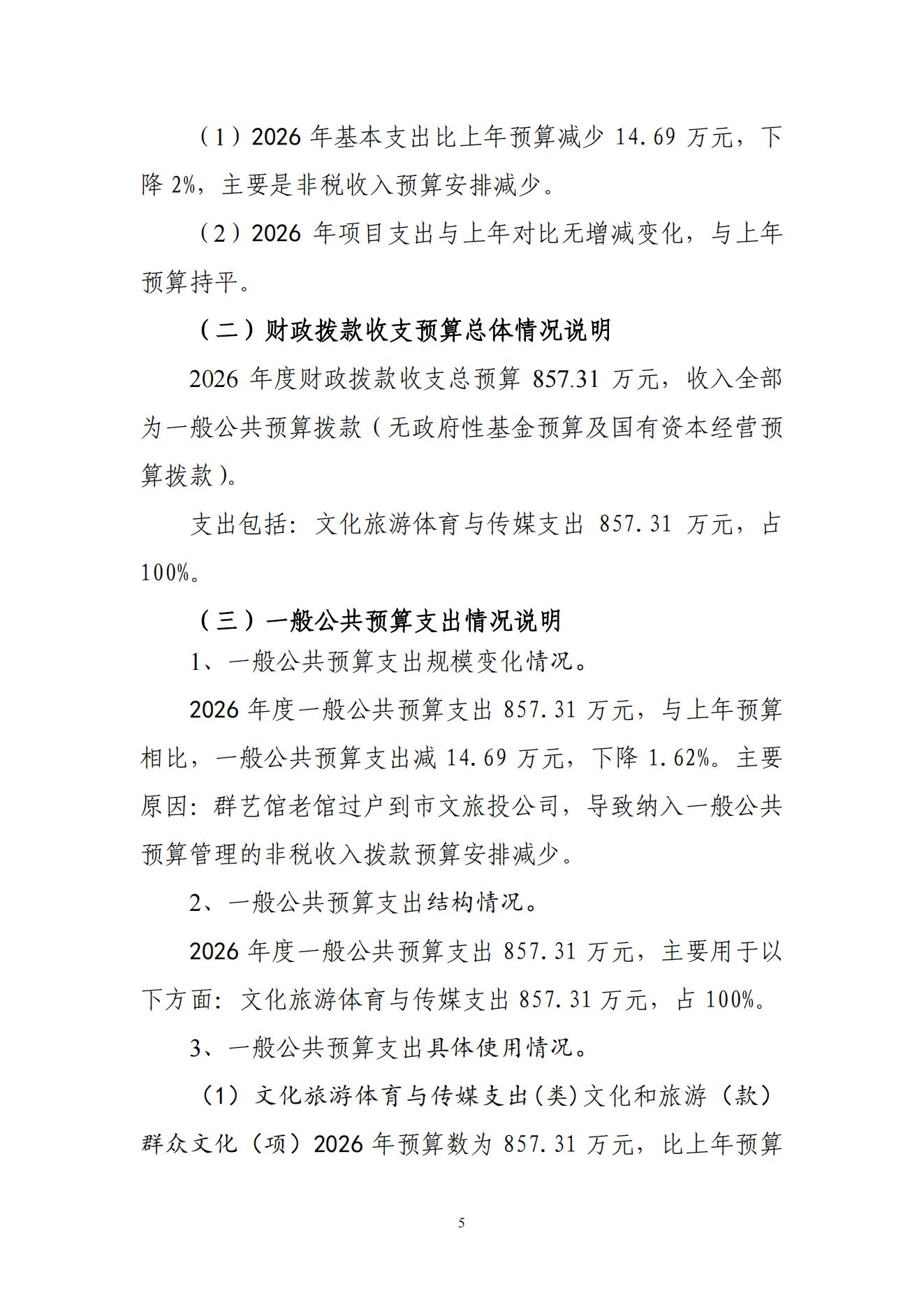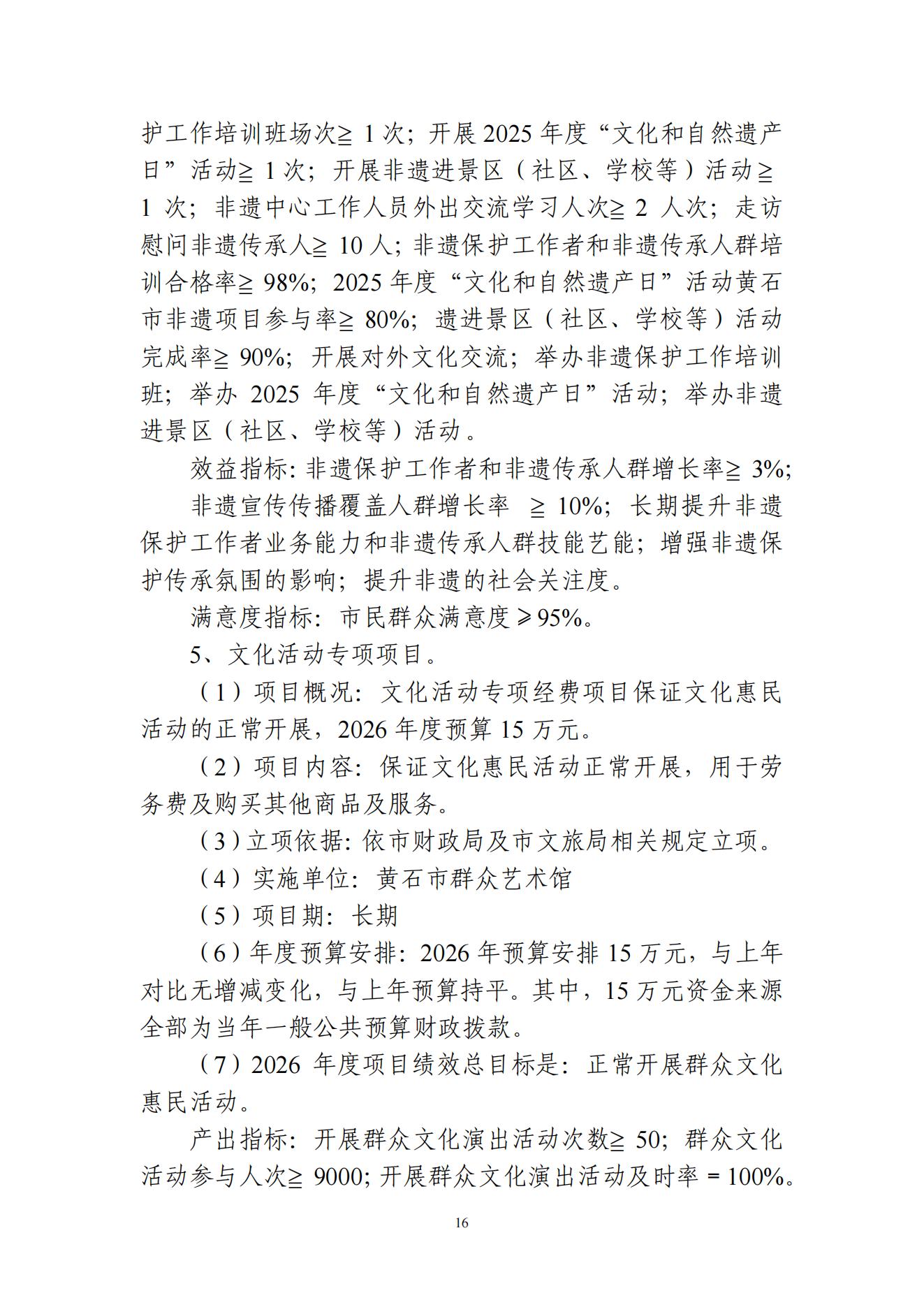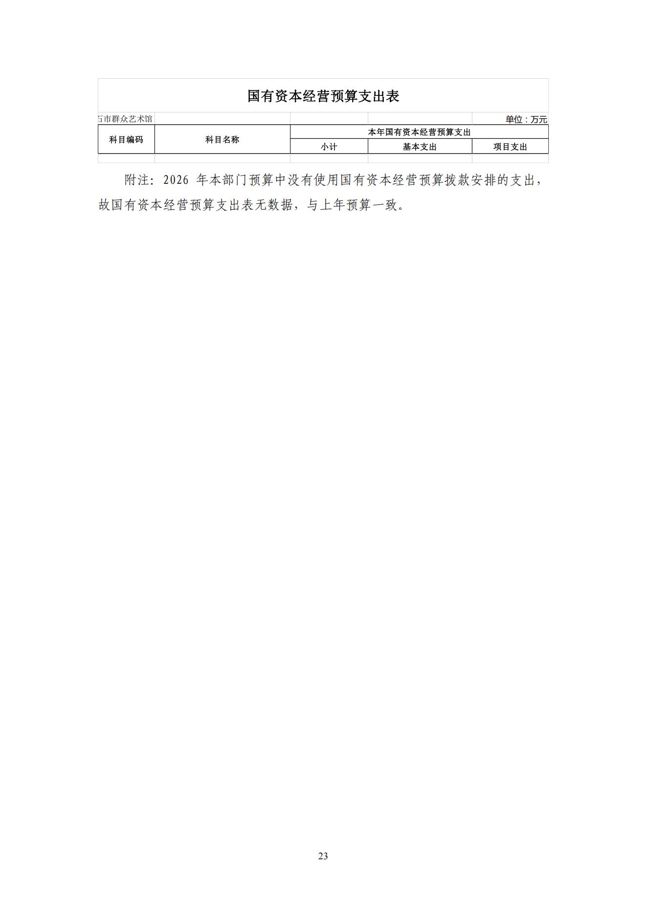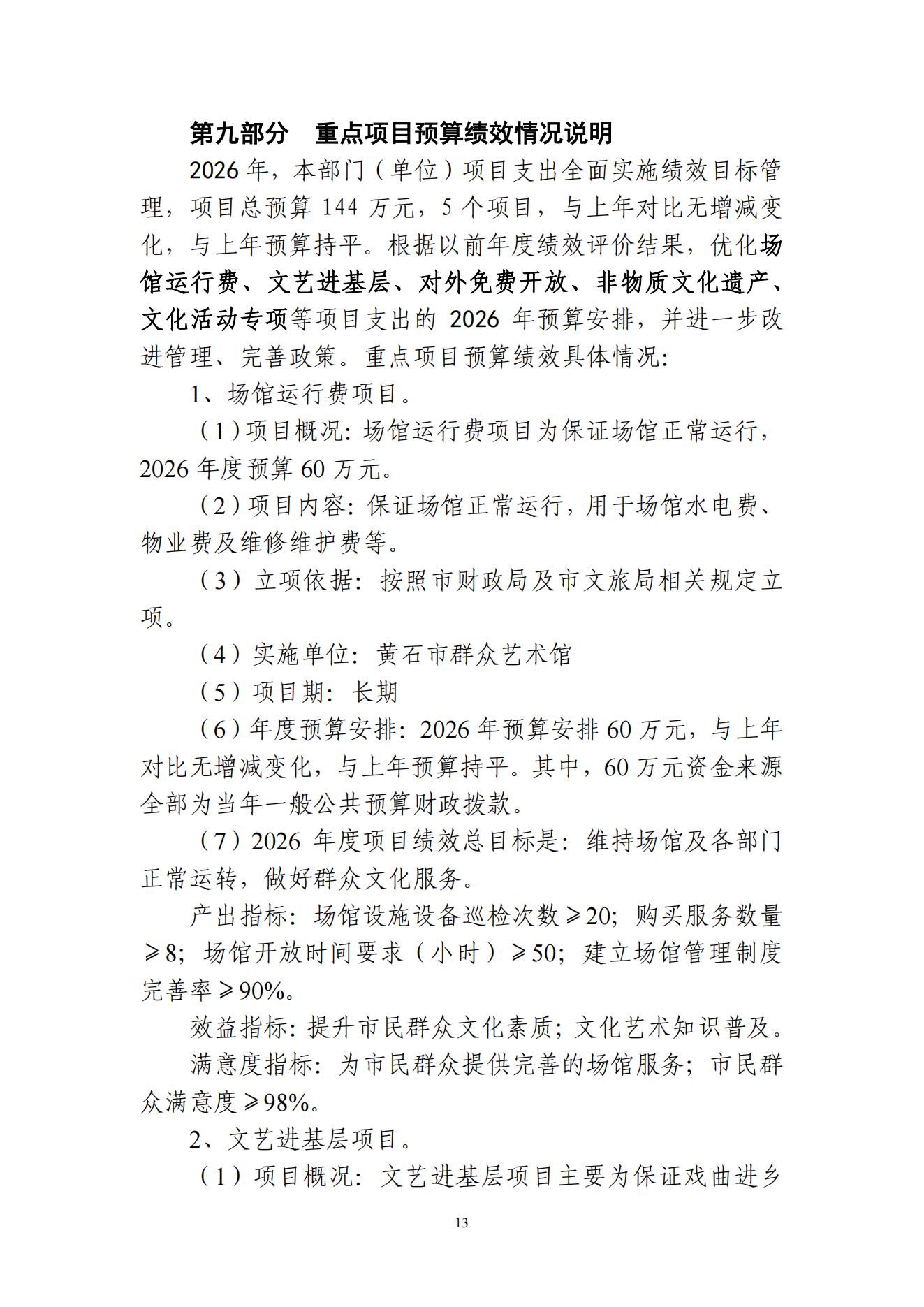 2026年度黄石市群众艺术馆部门预算公开情况说明