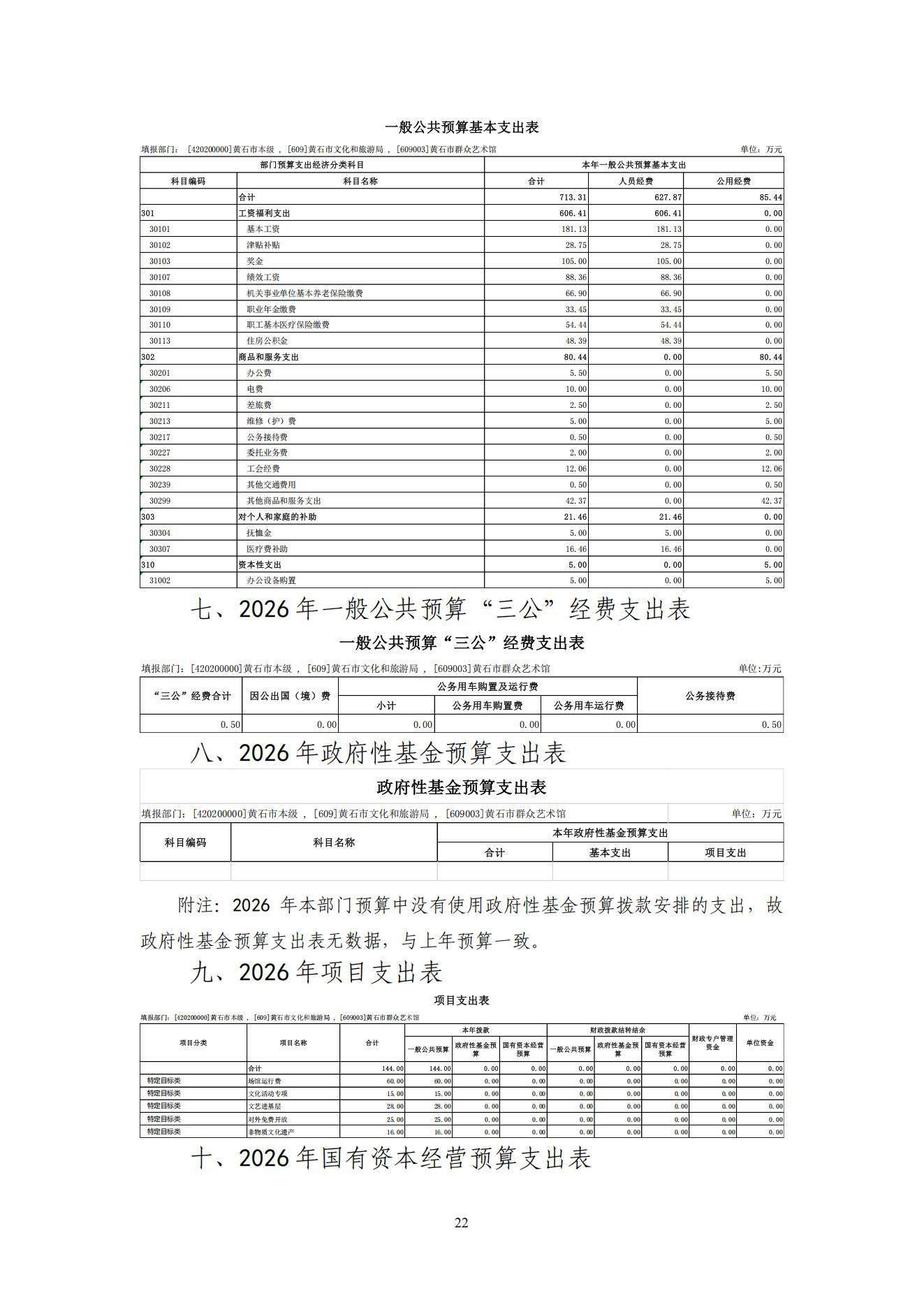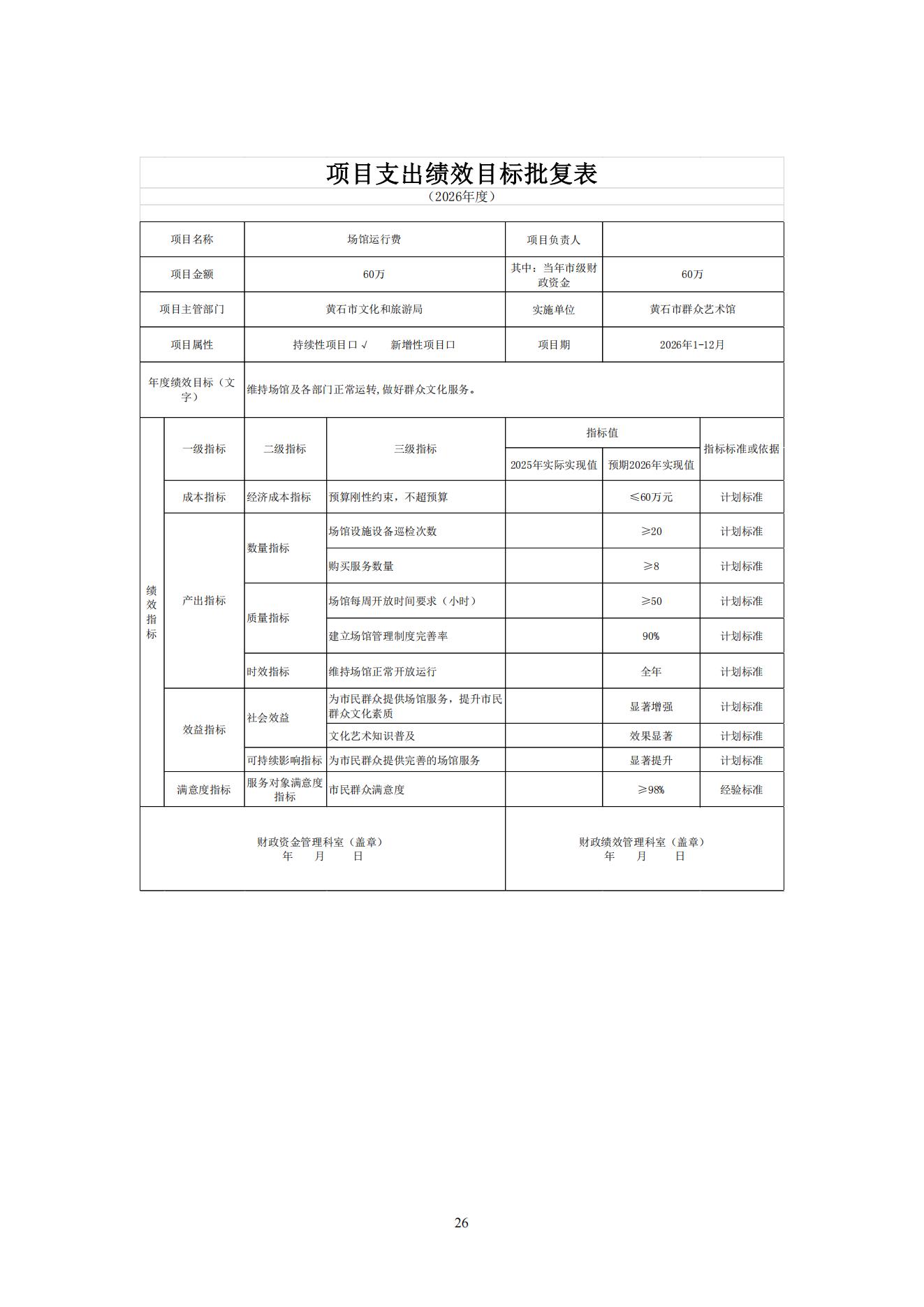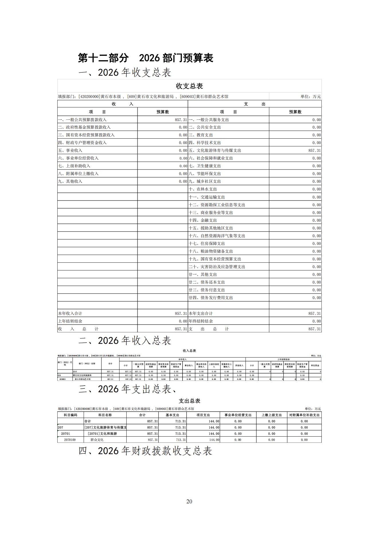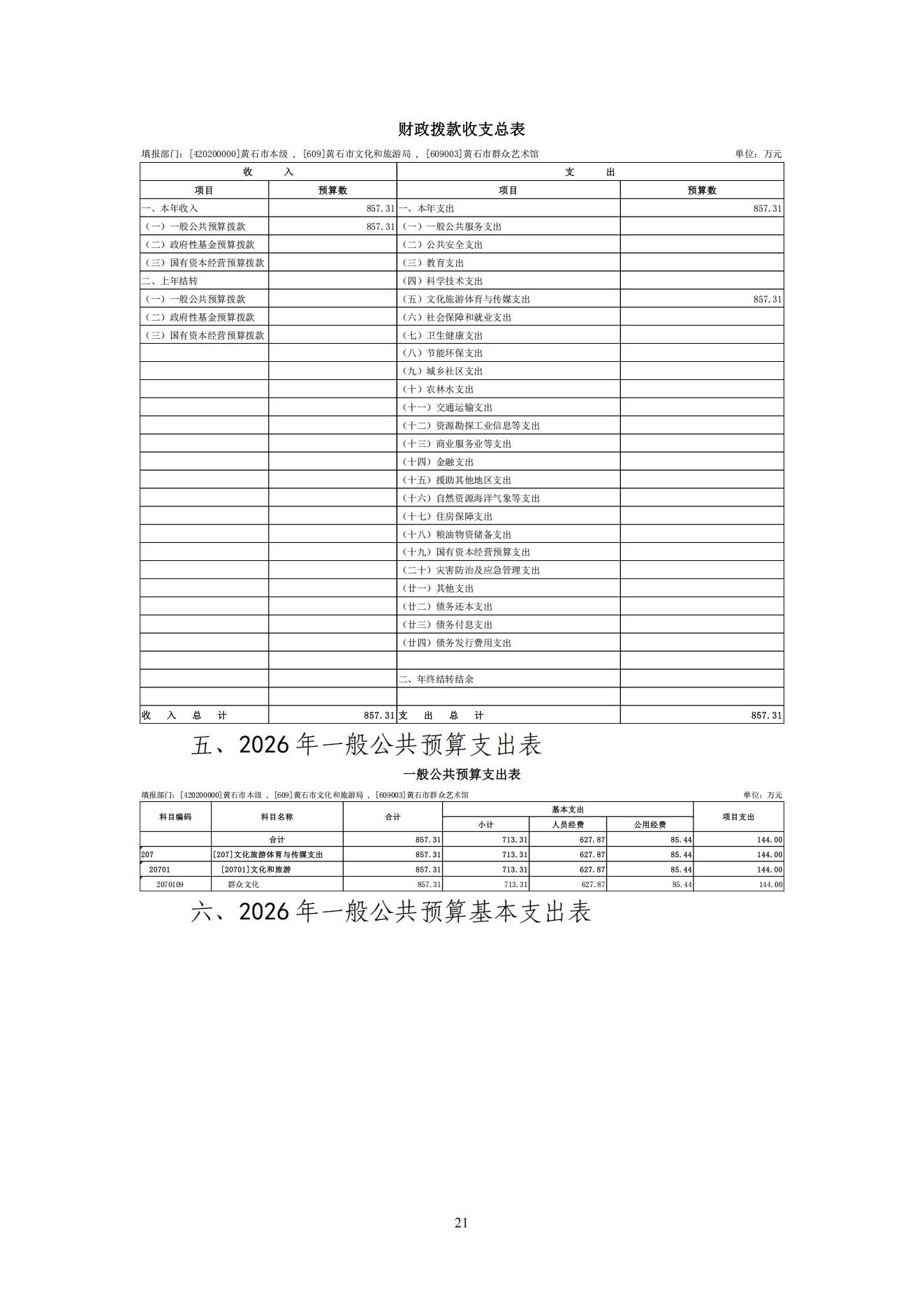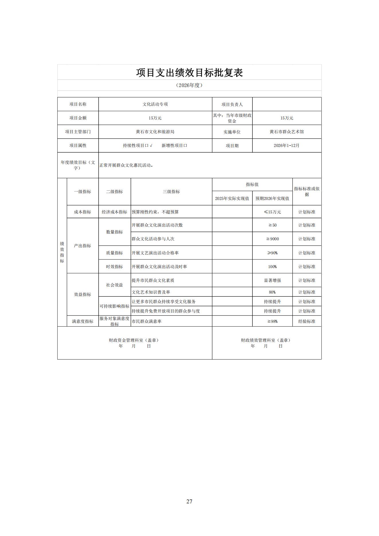 2026年度黄石市群众艺术馆部门预算公开情况说明